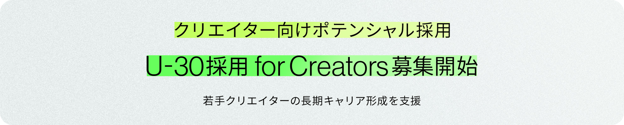 そのため、「募集職種一覧/エントリー」から、「クリエイター職」を選択し、募集している職種や事業部/子会社を選択し、ご希望の求人にご応募ください。U-30採用は、ポテンシャルを重視した採用として、2025年より募集を開始しました。